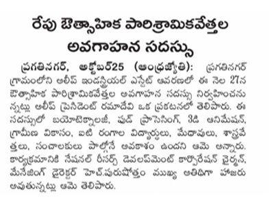Repu owtsahika paarishramikavethala avagahana sadassu